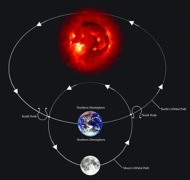 The Lunar Nodes are a point where the Plane of the Ecliptic (Earth’s orbit around the Sun) contacts the orbit of the Moon around the Earth. These points are seen to be in signs opposite each other in the Zodiac.