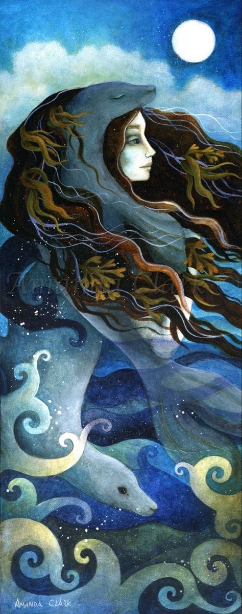 The third Bardic poem in the volume arose after a friend who loved Rhiannon’s Dance, sent a photo of her painting. Her image (not the one shown below) was a woman shapeshifting into a Selkie…the magical seal of folktales from the northern shores of the UK.
